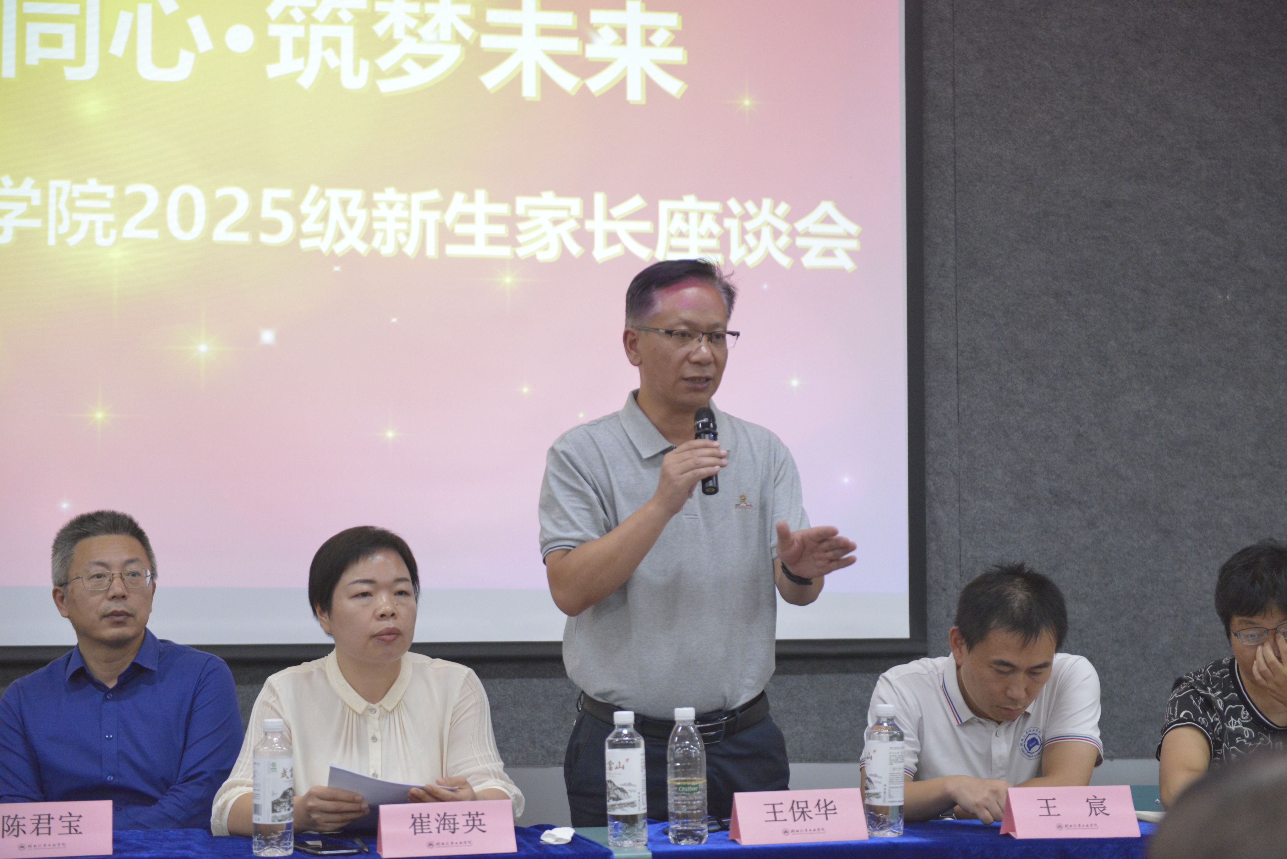为深化家校协同育人机制,搭建高效沟通平台,凝聚教育合力,9月6日下午,必赢亚州242.,net在6113教室成功举办“携手同心·筑梦未来”2025级新生家长座谈会。学院党委书记崔海英、院长王保华、党委副书记马晓涛、副院长陈君宝、王宸、王红霞,各专业负责人、系主任、新生班主任、辅导员及新生家长共同参会。座谈会由马晓涛主持,现场座无虚席,气氛热烈融洽。