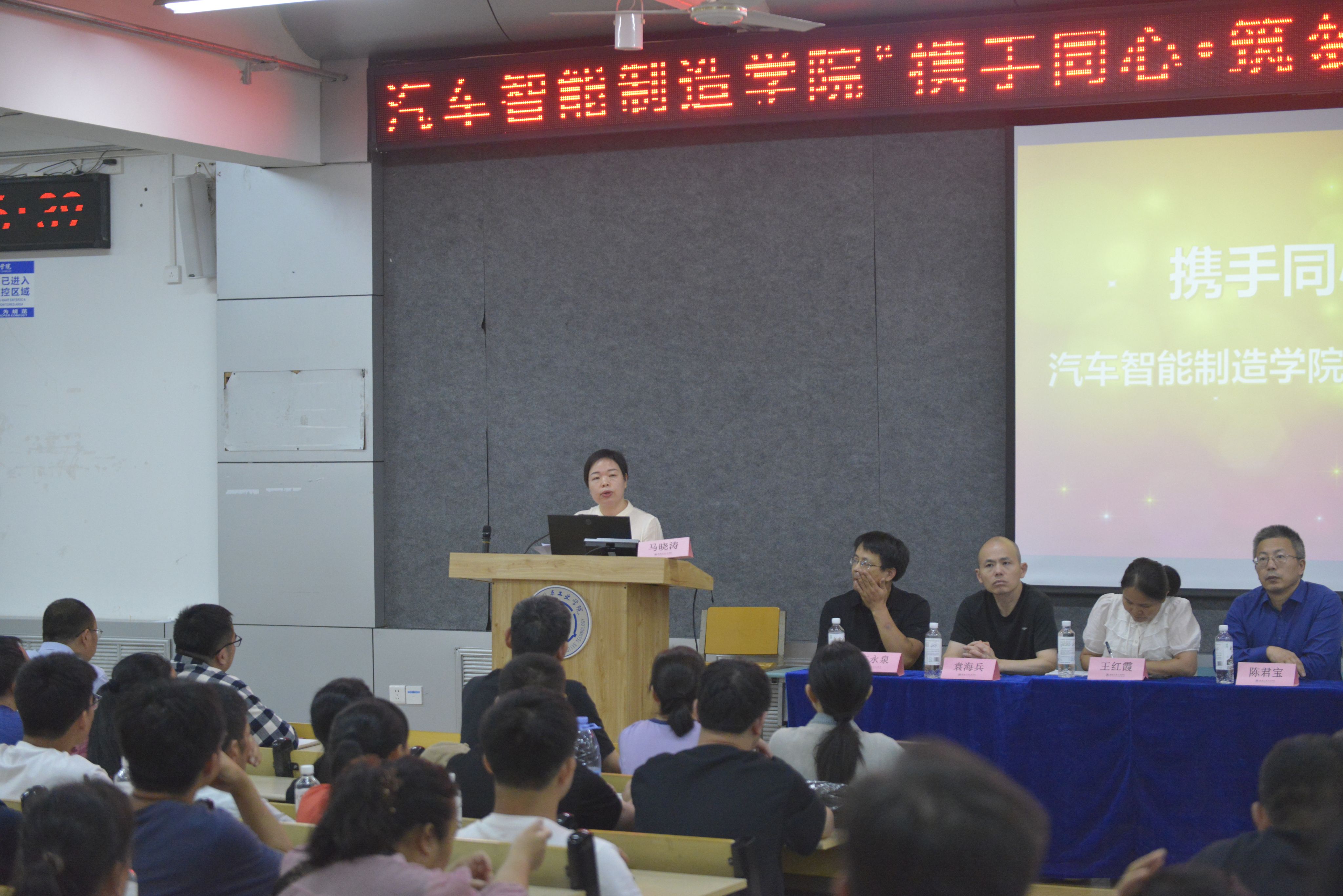 王保华院长系统介绍了学院发展概况、专业特色与人才培养体系,着重阐述了学院在智能制造领域的学科布局、专业优势与建设成果,并介绍了高水平师资队伍建设、教学科研创新及人才培养成效。他表示,学院将持续优化育人机制,推进产教融合,提升人才培养质量与社会服务能力,为学生成长提供坚实平台。他寄语新生在“汽车智能人才的沃土、未来工业的梦工厂”中拓宽视野、锤炼能力,为未来发展奠定坚实基础。