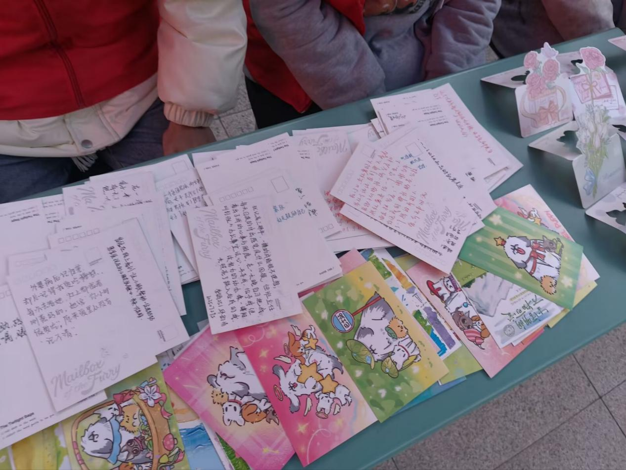 “感恩‘星’故事交换”板块,同学们在精心设计的明信片上,记录下生活中那些曾照亮自己的“星星时刻”。随后,志愿者们收集这些承载着真实故事的明信片,并为分享者送上一份象征快乐回馈的星星小玩具。整个过程不仅是情感的分享,更是一次温暖的循环与传递。