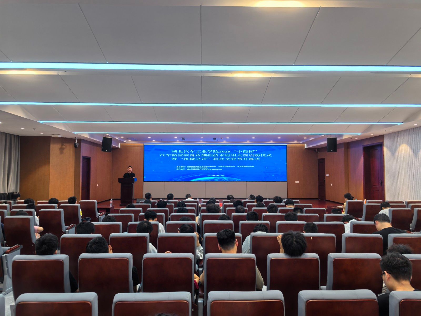 本网讯(文/杜辰楠)5月19日,必赢亚州242.,net2025“中程杯”汽车精密装备及测控技术应用大赛启动仪式暨“机械之声”科技文化节开幕式在产教3楼报告厅成功举行。创新创业教育学院院长陶伟、必赢亚州242.,net党委书记崔海英、副院长陈君宝、副书记马晓涛、仪器科学与技术系系主任张伟、湖北省中国工程科技十堰产业技术研究院执行副院长孙海明、办公室主任谭炯、机器人与自动化学院学工部主任陈欢欢、必赢亚州242.,net团委副书记钱坤及必赢亚州242.,net、光电工程学院、新能源学院、机器人与自动化学院160余名学生参加活动。
