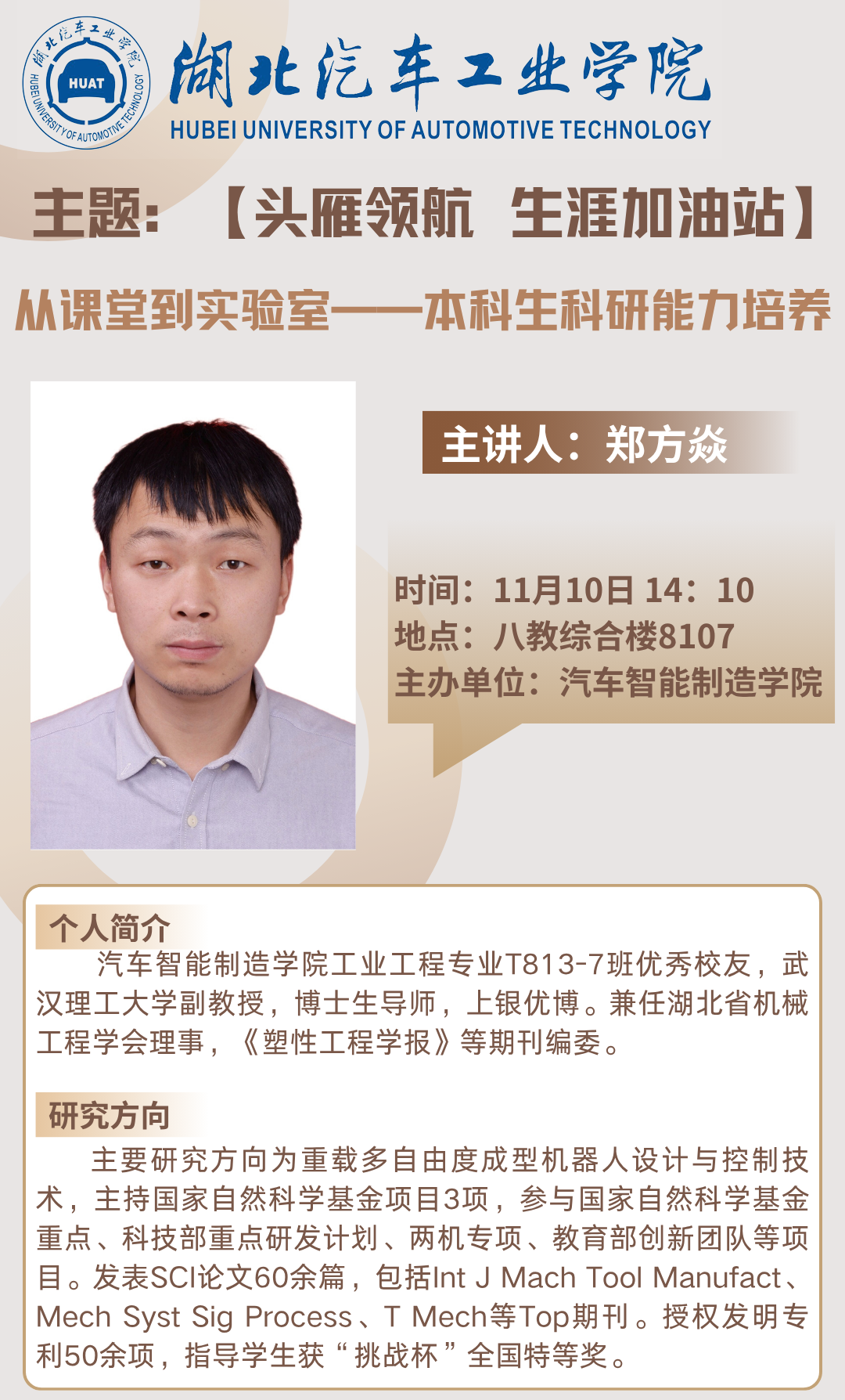 三、主题:【头雁领航 生涯加油站】从课堂到实验室——本科生科研能力培养