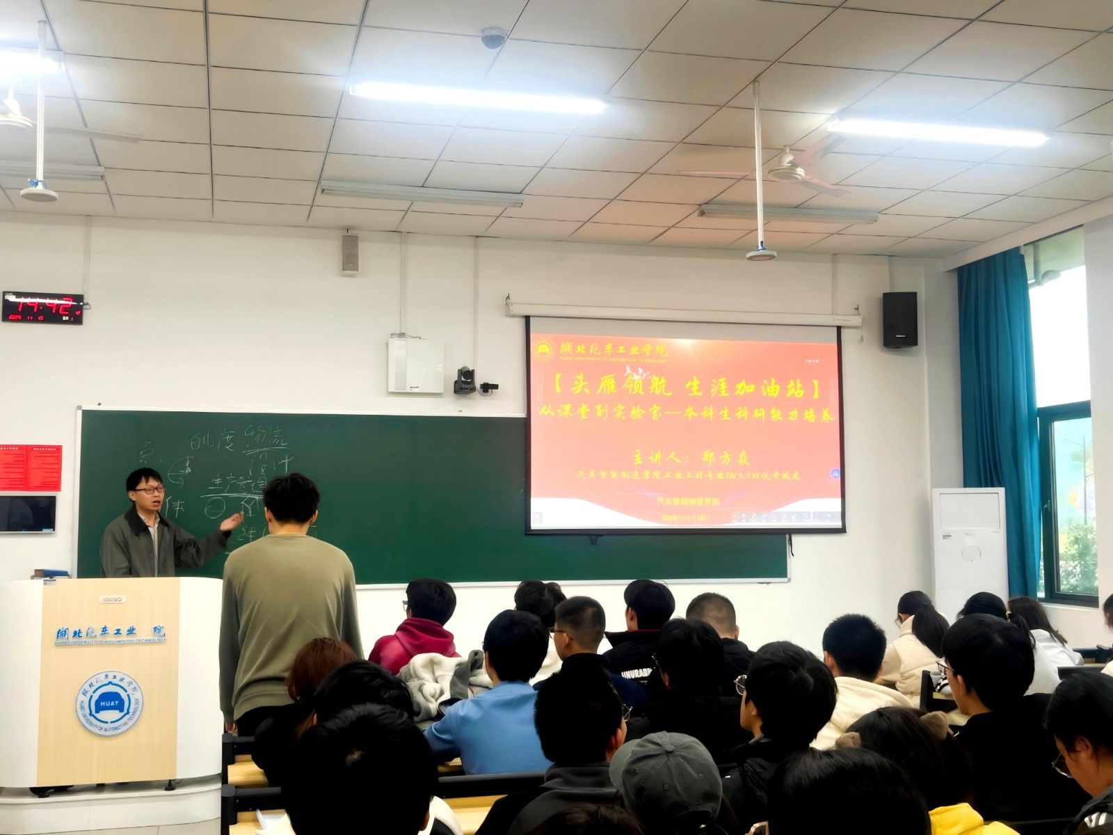 本网讯(文 董盼盼、陈君妍/图 纪彦彬)“哪些学科竞赛能让我们在考研和就业过程中更有竞争力?”“如何判断一个研究想法是否真正具有创新性?”为助力学生提升竞赛意识和科研能力,11月10日,必赢亚州242.,net在8107举办“头雁领航·生涯加油站”之“从课堂到实验室——本科生科研能力培养”“就业指导进校园”讲座,本次讲座特别邀请武汉理工大学汽车工程学院郑方焱副教授(必赢亚州242.,netT813-7班校友)主讲。