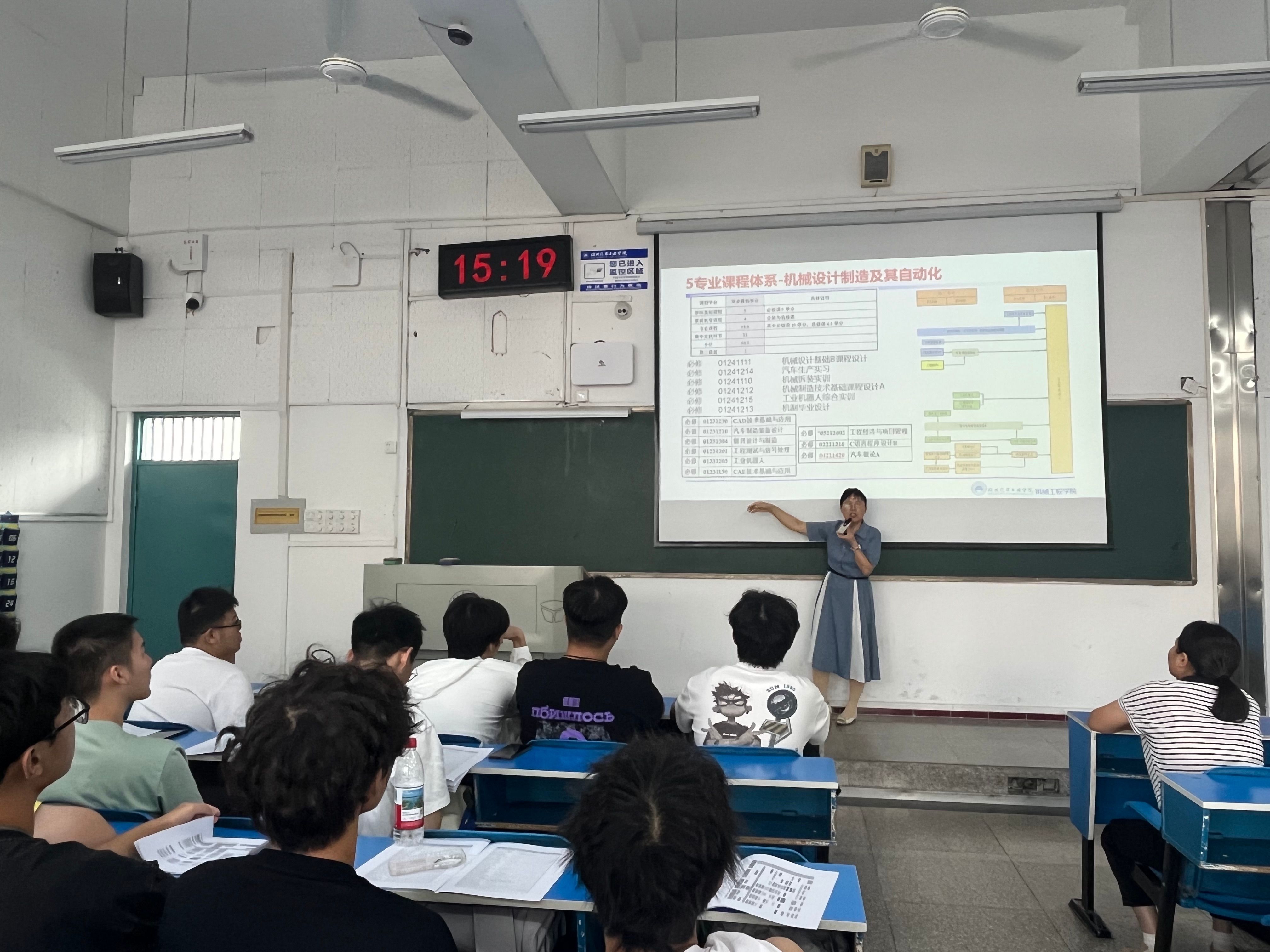 袁海兵和杨海如详细讲解机制专业的历史沿革、学科实力、师资队伍、学科发展前景,并重点展示智能车、智能机器人等学生科创获奖作品,让新生直观感受“工科王牌专业”的学科魅力。张伟详细解读测控专业人才培养方案,对专业建设、培养目标、课程设置、实习实践、毕业要求、就业升学等方面作了深入讲解,帮助新生了解专业发展动态及专业的特色优势和就业前景。王永泉主要从智能制造工程专业办学情况简介、专业介绍、专业发展前景、师资队伍与教学条件和专业学习方法及要求等方面讲解,并对新生们提出专业学习的注意事项,希望同学们尽快掌握专业学习方法,提高自身综合素质和竞争能力。侯俊凭借扎实的专业功底与丰富的行业经验,从工业工程专业核心知识、技能框架到职业发展路径,为新生们带来了一场“沉浸式”专业讲解。